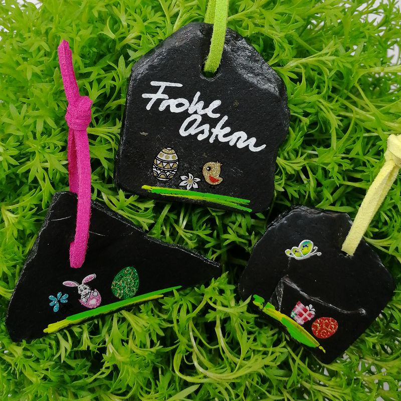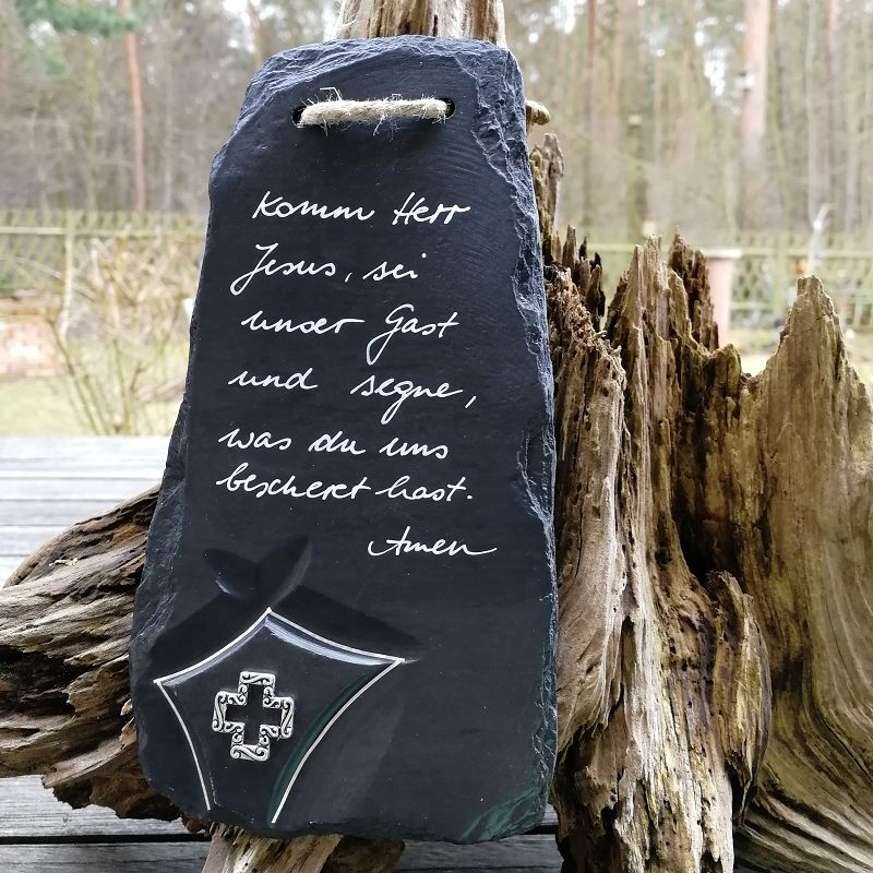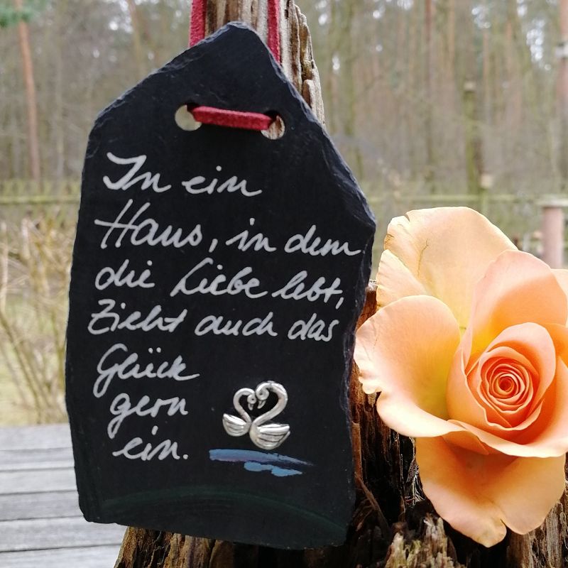 Hier finden Sie in kleiner Auswahl, Beispiele meiner Unikate aus Schiefer, in Handarbeit von mir gefertigt; mit viel Liebe gestaltet und dafür geschaffen, die Herzen anderer Menschen zu berühren.