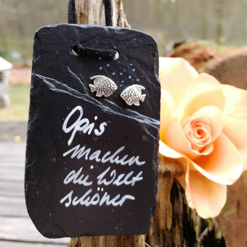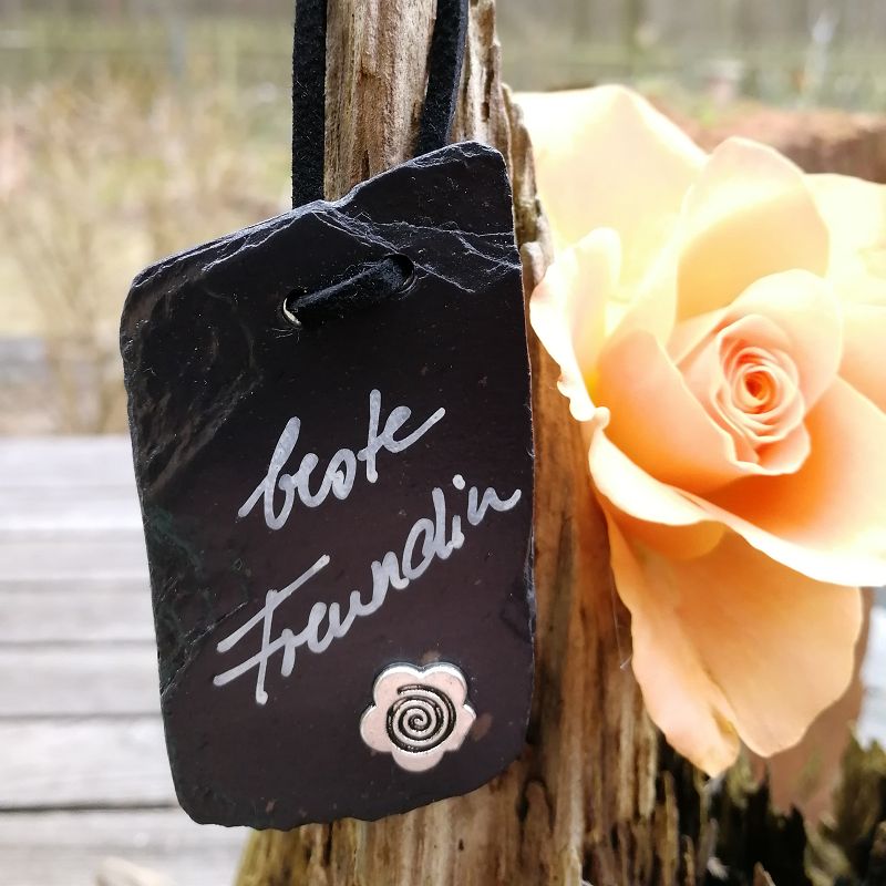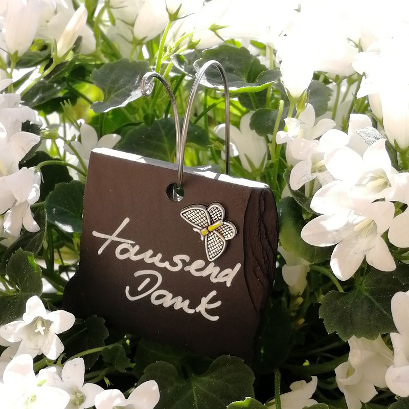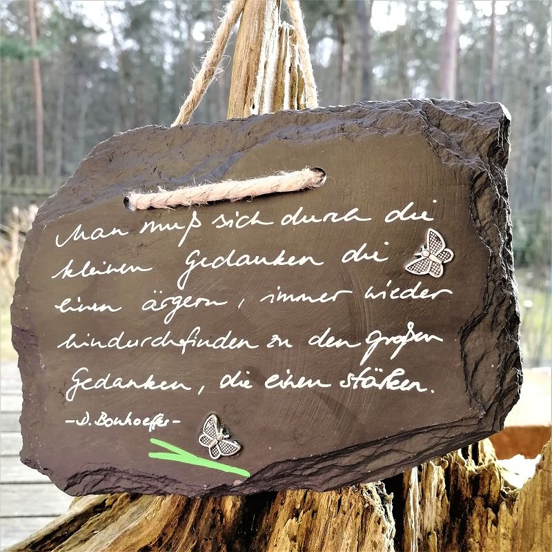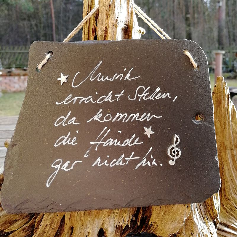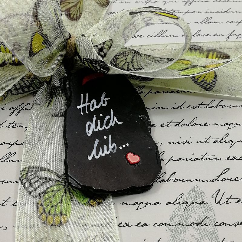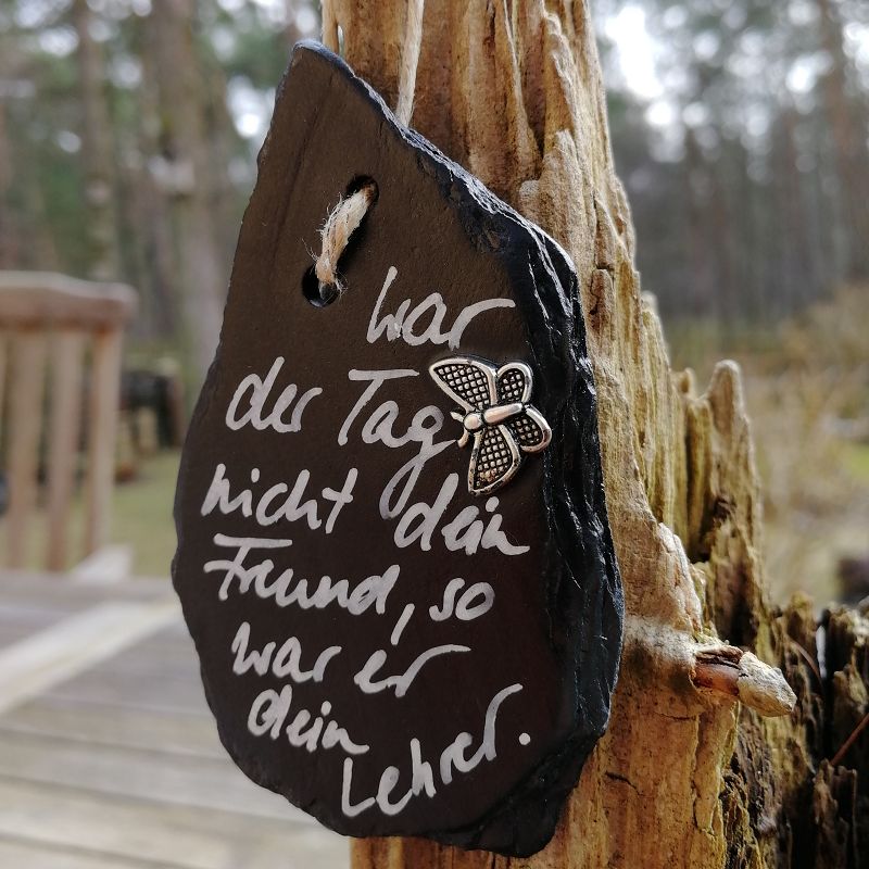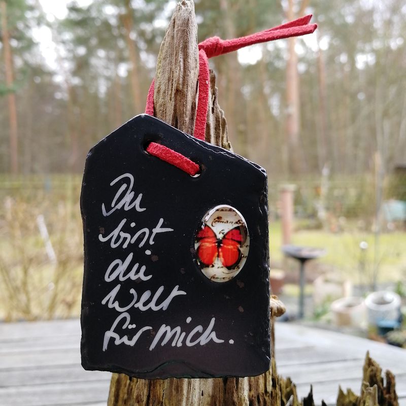 Ich fertige Geschenkanhänger aus Schiefer, Aufhänger, wetterfeste Kräuter- und Pflanzenschilder aus Schiefer, Blumentopfstecker mit persönlichen Botschaften, individuelle Schildchen, Gastgeschenke, Zitate und Sprüche auf Schiefer, Lustiges, Trauriges, Nachdenkliches, Mut machendes, zu vielen Themen und Anlässen das ideale kleine Mitbringsel oder auch Schiefergeschenk an sich selbst.